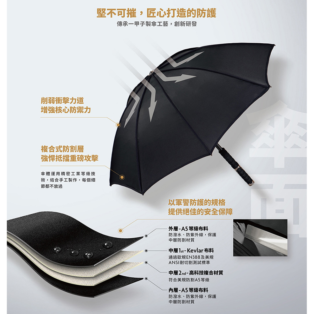 五層傘布構造,隨身防護安全加持
