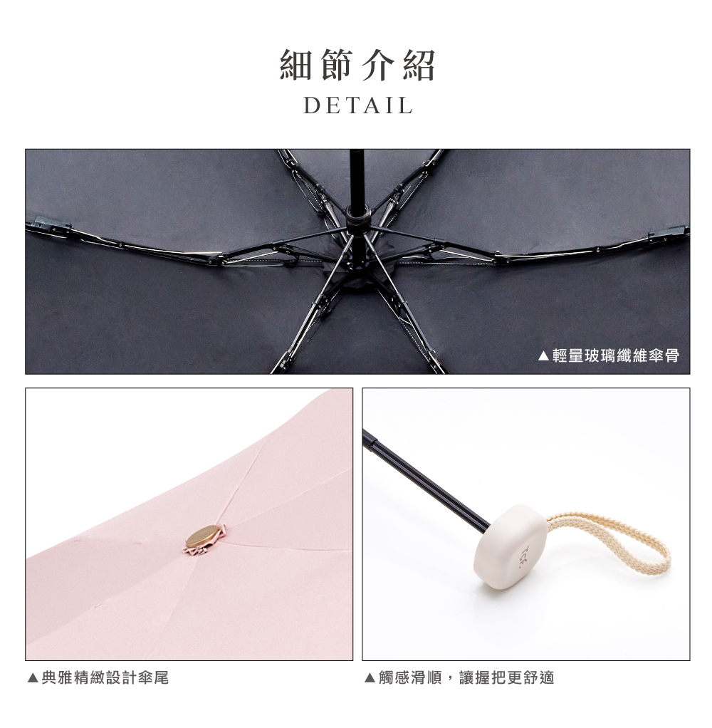 ‧鋁中棒+玻纖傘骨,輕薄短小同時堅韌抗風